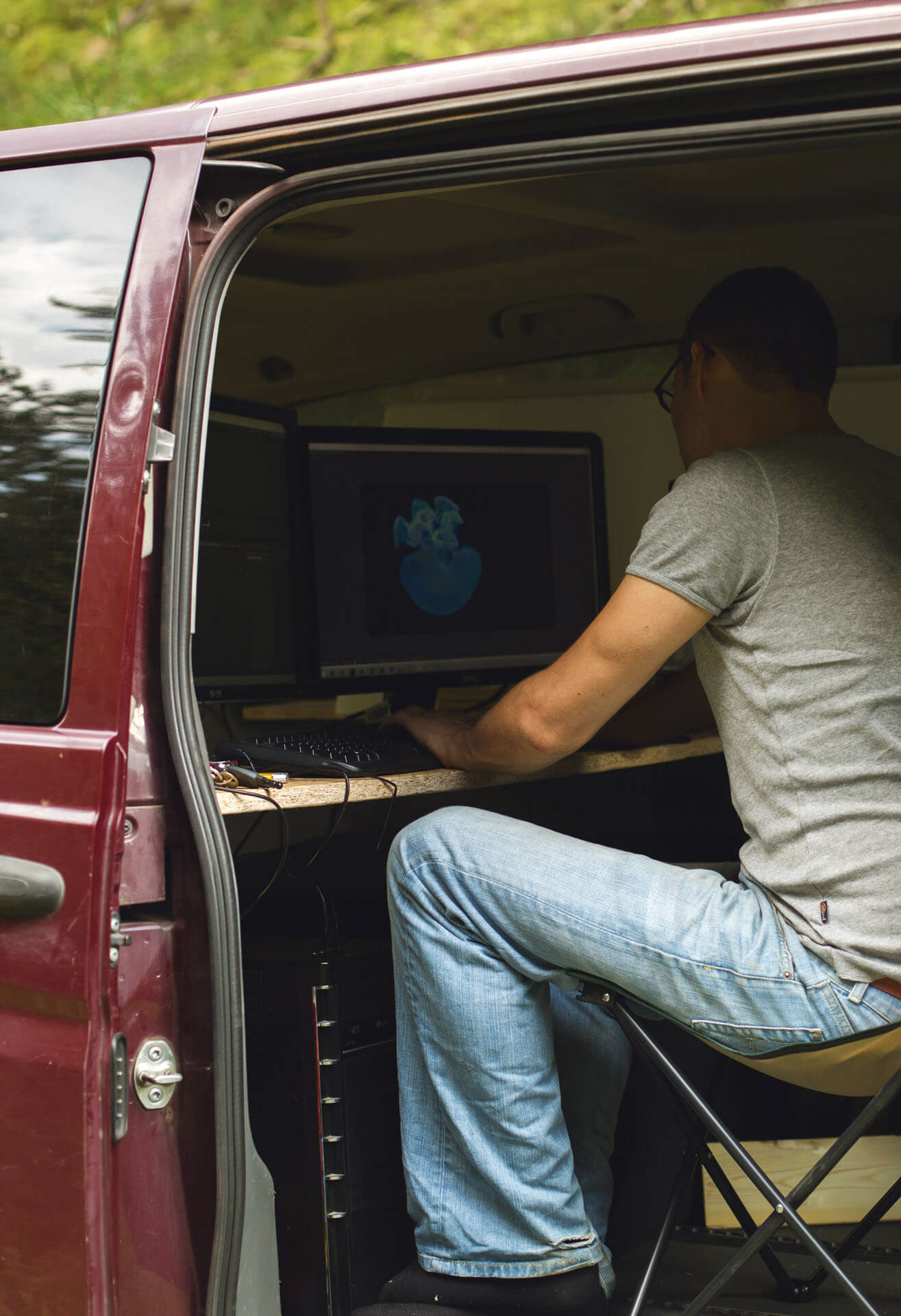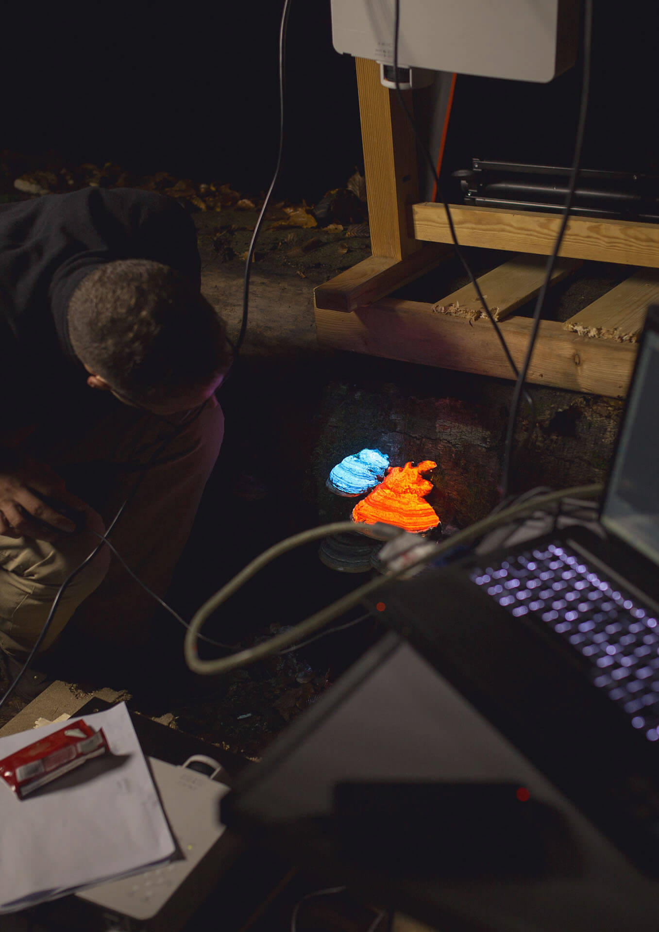 The artists spent six weeks in the forest fascinated by the silence and natural occurrences in nature, especially the phenomenon "bioluminescence". They personified the forest to accentuate the natural beauty by creating luring luminescent plants and glowing magical mushrooms that speaks volumes to any visitor that enters the minds of the artists through viewing "bioluminescent forest".