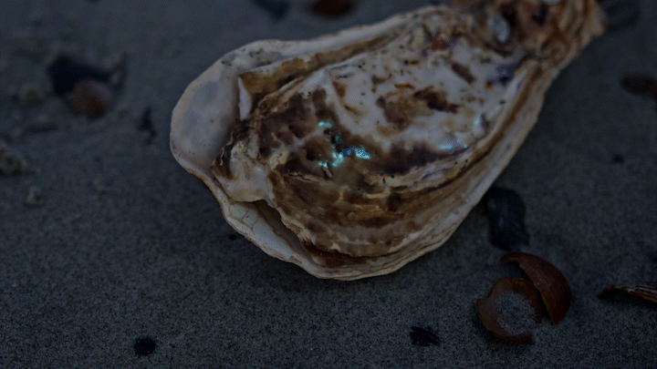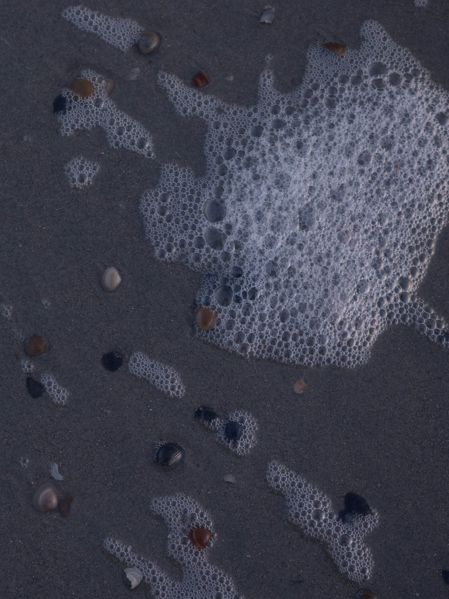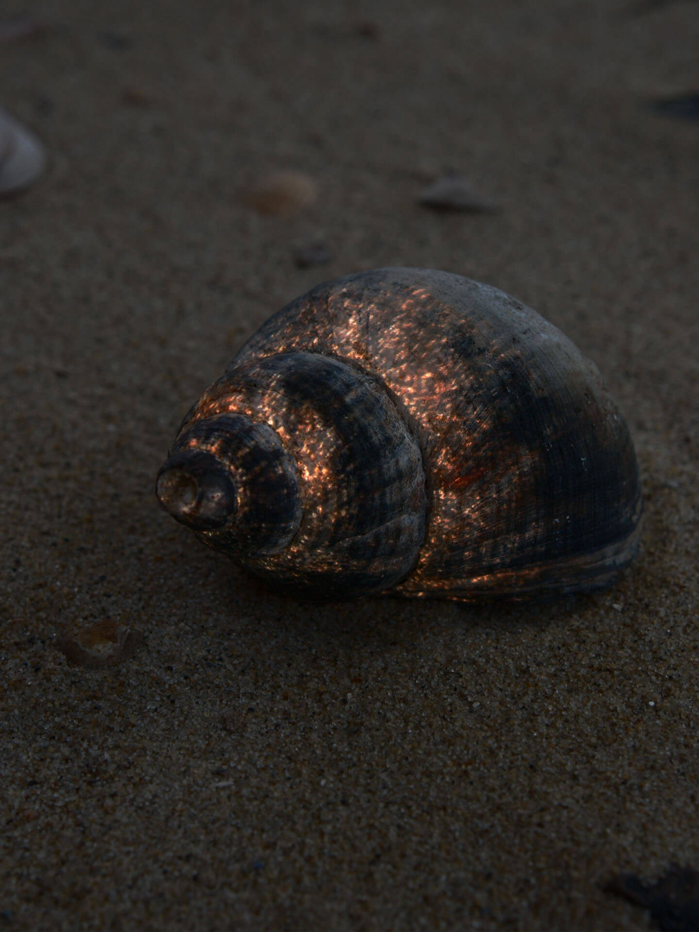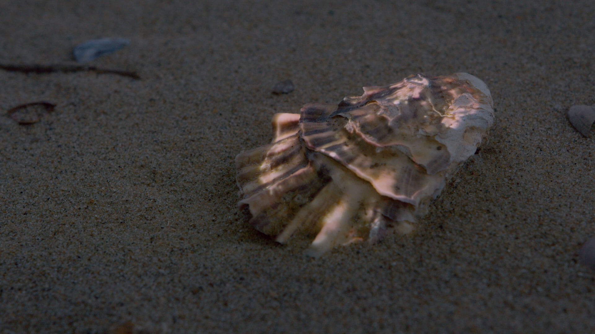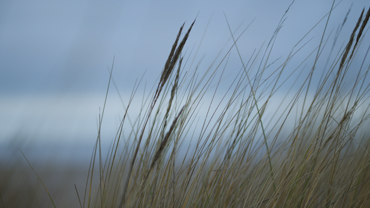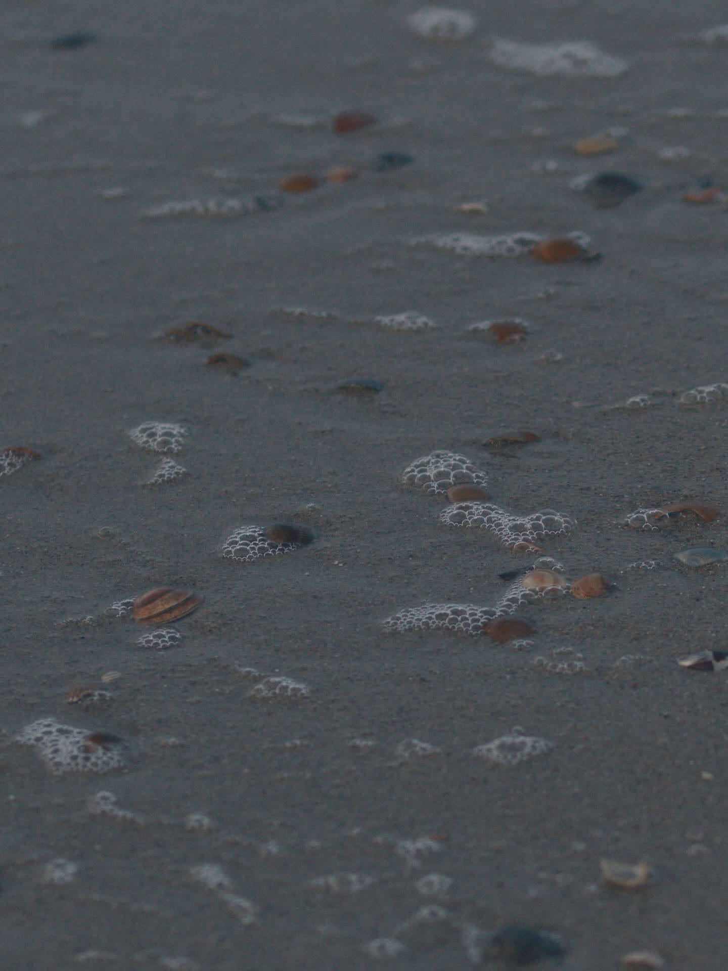 Wind, waves and the stormy ocean. Sand flying over the beach. Dancing beach grass and shells revealing their magical light. –