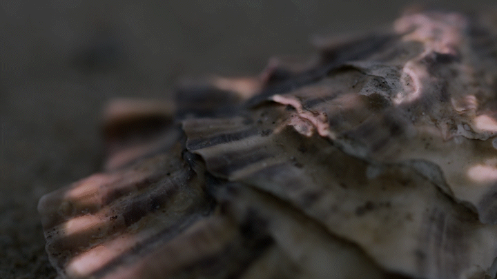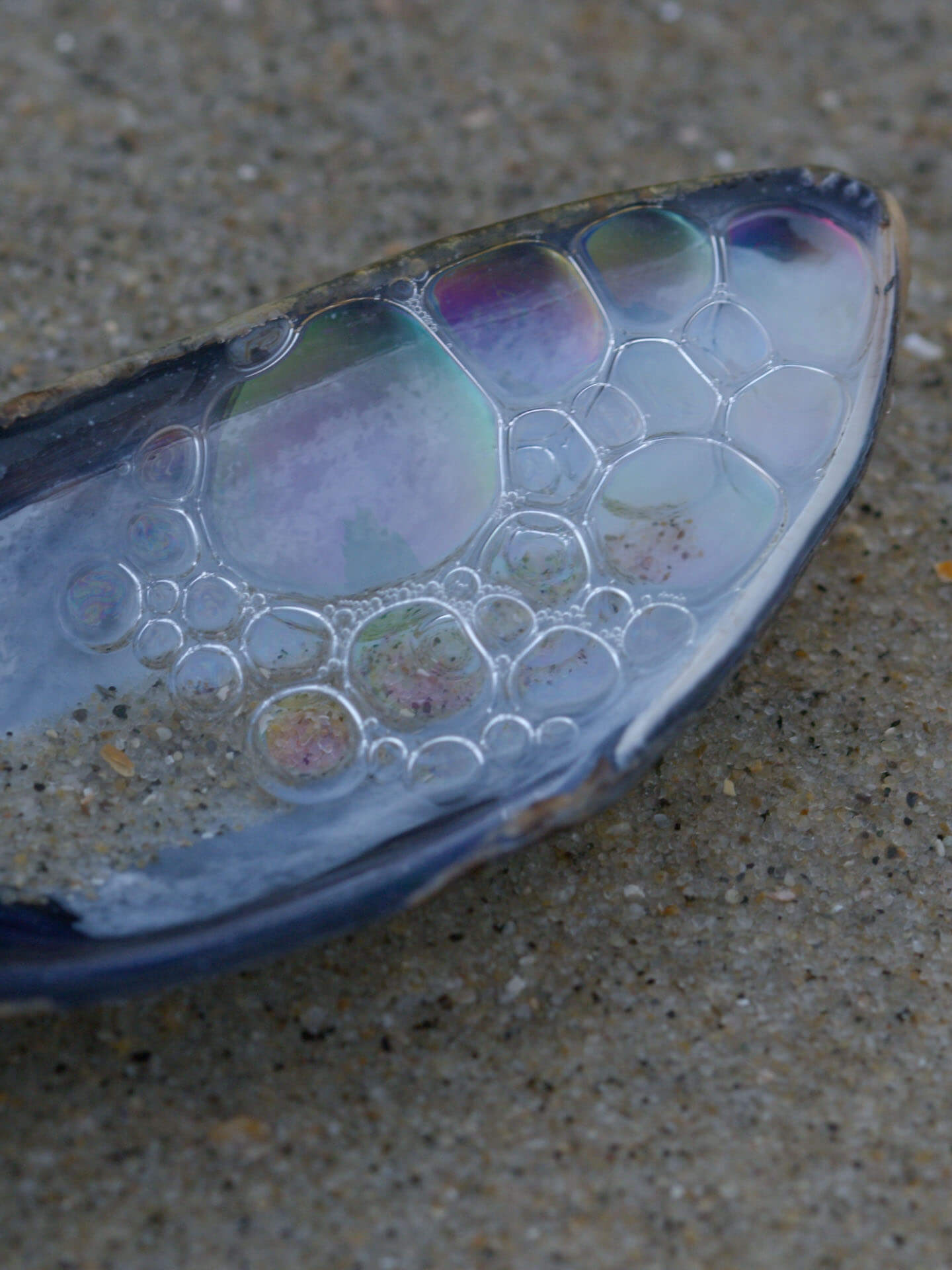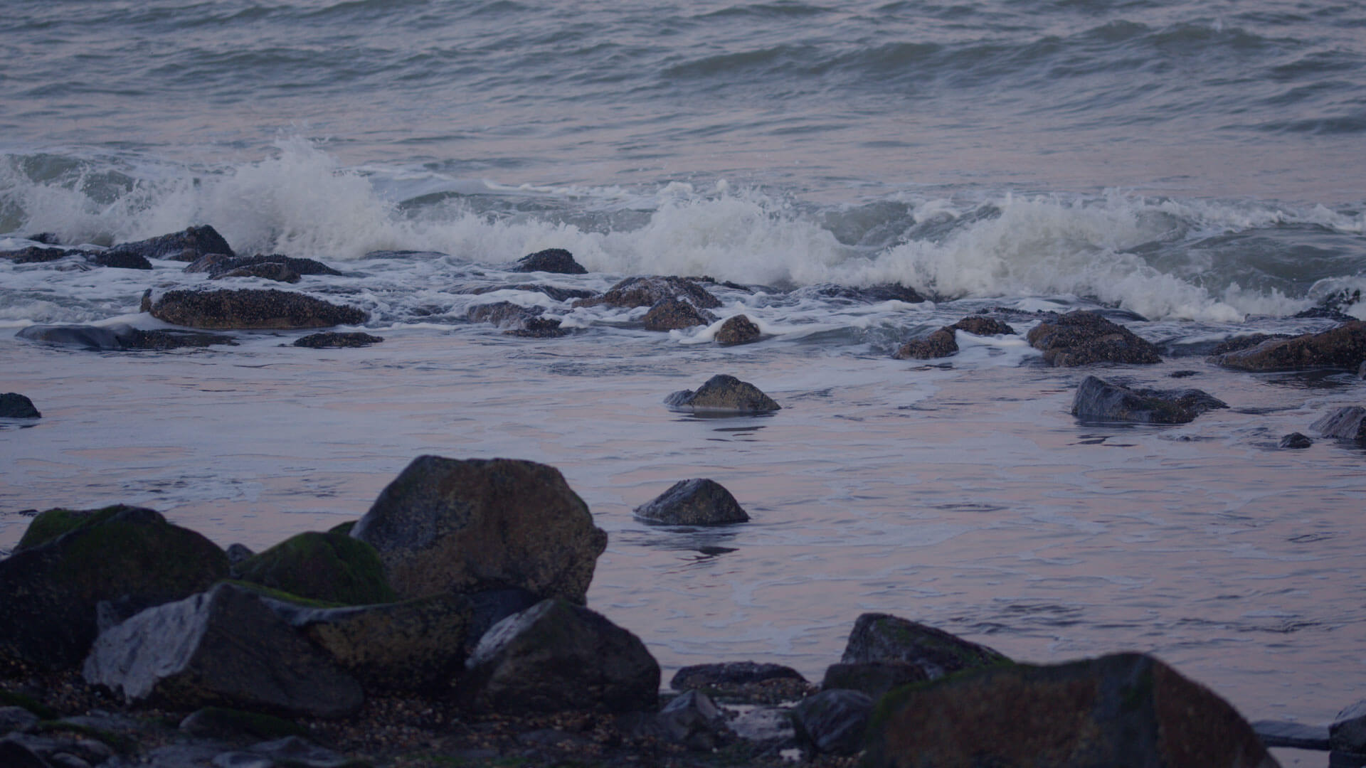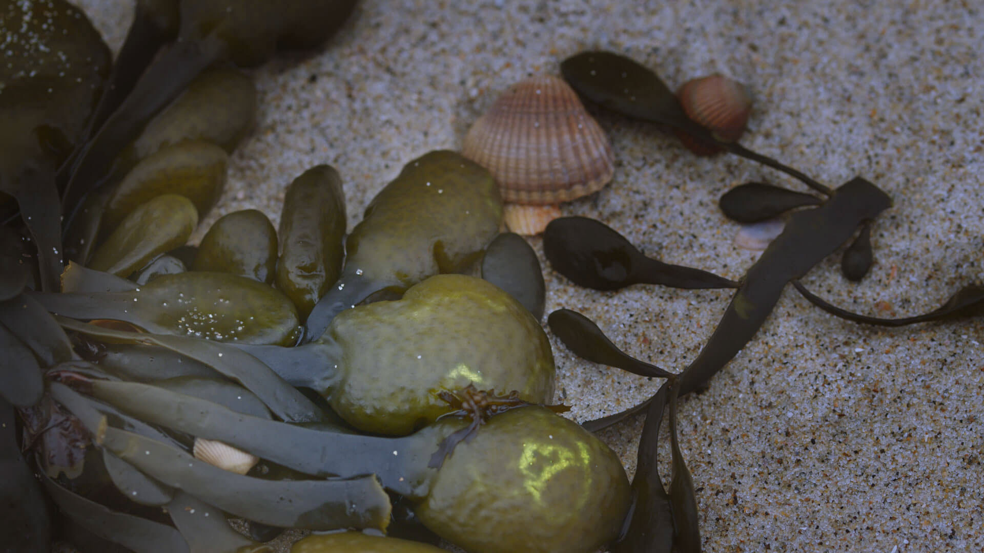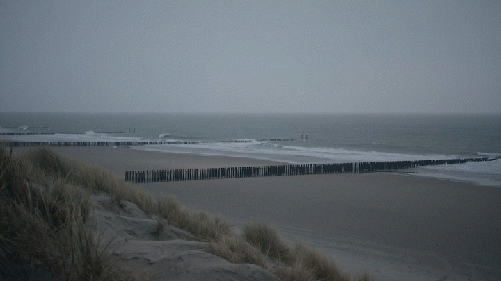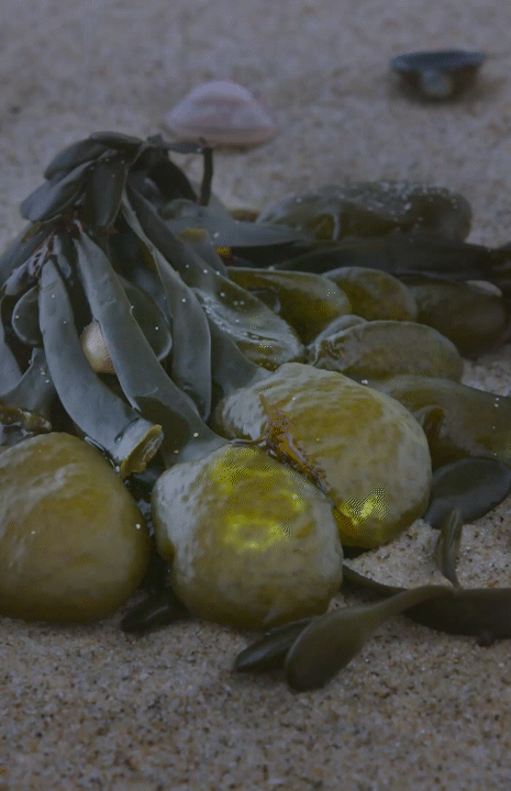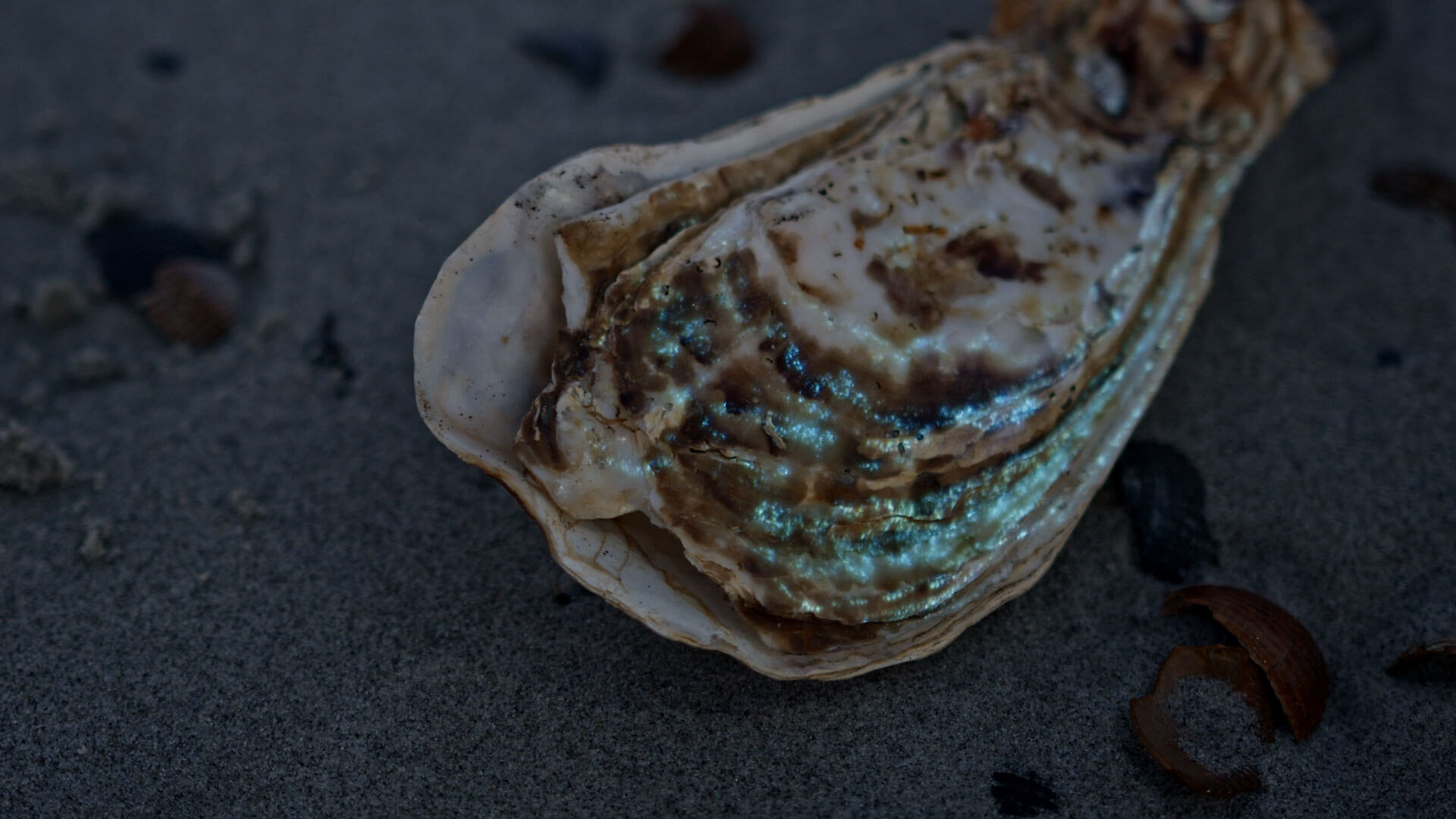 Wind, waves and the stormy ocean. Sand flying over the beach. Dancing beach grass and shells revealing their magical light. –